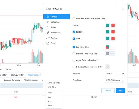 One of the great features of Trading View is the ability to customize your charts according to your preferences. To customize your chart: